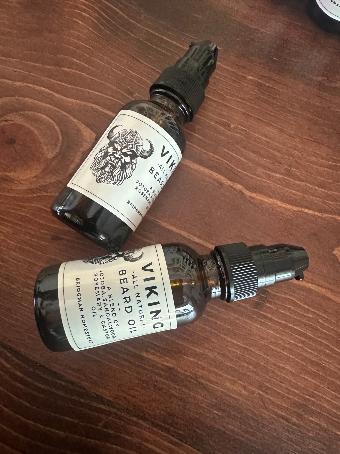 Beard oil! All natural beard oil, handmade to order. Features an organic jojoba and sweet almond oil base to provide hydration for underlying skin to prevent itch and hydrate the beard itself. Additionally each of these is made with rosemary oil for maximum growth. Different scents to match your personal style and everything you need to have your best beard! Made with your beard in mind! 2 scents available : Viking - Sandalwood and Eucalyptus Lumberjack - Pine and cedar All scented with therapeutic grade essential oils